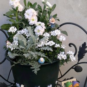 花散歩で✨ 🤍🤍💜💜🎄💛🤍💜💜🤍🩷🤍♪ ご近所の 素敵な寄せ植え🤩 1️⃣ビオラ イベリス他 白いお花が素敵な一鉢 2️⃣ビオラ ブラキカム 紫色が素敵な一鉢 3️⃣ドイツトウヒの素朴なツリー🎄 昨年と同じように公園で! 4️⃣ビオラ ブラキカム他白いお花 も素敵な一鉢 5️⃣プリムラ 薄いピンクが素敵な一鉢 今日も 笑顔😄で 過ごせますように💐