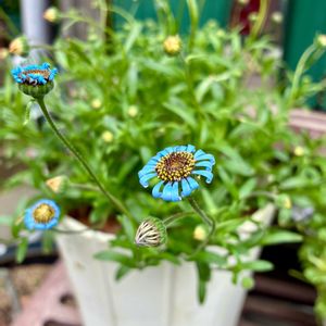 ずっとスッキリしないお天気です。 我が家のブルー💙🩵・パープル💜系のお花達💐 💠キングフィッシャーデージー💠 なかなかお日さま☀️が出ないので花びらが開きません。 裏側に花びらクルクル🌀 💠ネモフィラ・マクラータ?💠 植え付け時から株元グラグラ。 以前⭐️にした事あり。 すぐに株元パッカーン💦 💠ブルークローバー💠 植え付けから2年目。 鉢いっぱい🈵に咲いてます♣️ 💠ブラキカム・ブラスコ💠 先月13日の投稿から約20日。 どんどん開花中。