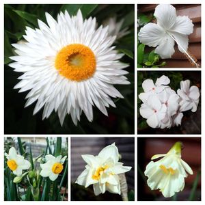 ホワイトスタート~❕ 😍🤍 今咲いてるわが家の白いお花を集めました😁 ヘリクリサムは10月からずっと咲いてくれていてこれから春まで咲き続ける予定です🤗🌼 ハイビスカスは室内なら冬も不定期に咲いてくれるのが嬉しいですね😊 暑さ寒さに強いゼラニウム・カリエンテはぽつぽつですがまだ咲いてくれてます。水仙は早咲きの日本水仙と、バルボコジウム・雪姫だけですが、この時期咲いてくれるのがありがたいですねー😍