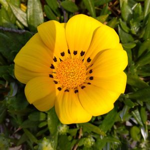 #お出かけ先🚶♀️ ①宿根ガザニアイエロー🟡 ②サイネリア🔵 ③ミニバラ🔴 ④カランコエ❤️ ⑤ツルニチソウ🩵 散歩途中で沢山の花と出会え ました🧡💜💙
