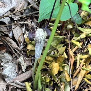 裏庭に植えたウラシマソウが 初めて咲きました🤍💜💚 山でもマムシグサには会えても ウラシマソウは会えなくて 見るの自体初めてです👀 本当に釣竿🎣垂らすんですねえ✨ 山野草は、環境さえ良ければ 毎年きちんと出てきて花を咲かせますよね✨✨ 今年もフジバカマとホトトギスが 顔を出しています🌱