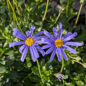 ブルーデージーは春と秋に2回咲くキク科の植物です。青い花びらと中心の黄色の雄花とのコントラストがとても鮮やかで、ガーデニングでも大変人気のある植物です...