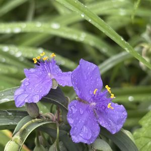 朝から雨☂️☂️☂️ 🏷️美しく青きドヨウ 参加します💜💙🩵 5枚目今朝のヘブンリーブルー 5輪💙💙💙🩵🩵
