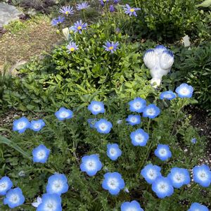 ブルーデイジー2年目 株がしっかりしてきた。 この青い色は癒されます。☺️ ネメシアは、頂いた苗からやっとここまで咲いてきた。 原種のチューリップ