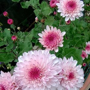 🍀おはようございます🍀 ピンクの優しい菊の花色に 癒されています〜(・∀・) 先日お迎えしたデルフィニウム❣ 蕾が少し膨らんできました♬ グリーンの菊の開きかけ💚 朝日が当たり〜 キレイ😊 挿し芽して4鉢になりましたが 他はまだ蕾が固いです