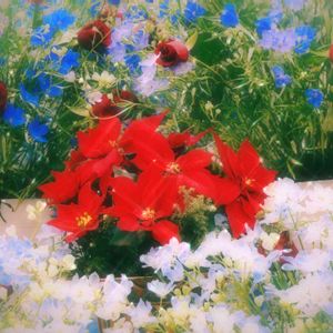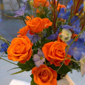 ミニアレンジ💐 そらちゃんのお花です /ᐠ. .ᐟ\ฅ ⸝⸝ニャオ 水色、紫色、白色3色のデルフィニウムと ピンクのカーネーションと 千日紅 今年もあとわずか、、 29日から次男一家、30日から長男一家が帰省する予定です✈️ 例年通りてんてこ舞いの年末年始😆🎍 孫たちと遊ぶのは体力勝負ですね ( ੭ ・ᴗ・ )੭Fight‼