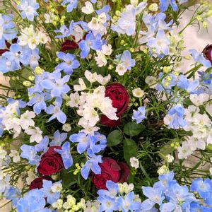 青色の涼しげな花を咲かせるデルフィニウムは、ヨーロッパに伝わるおまじないの「サムシングブルー」のブーケに使われる花です。 とても素敵な花で切り花やアレ...
