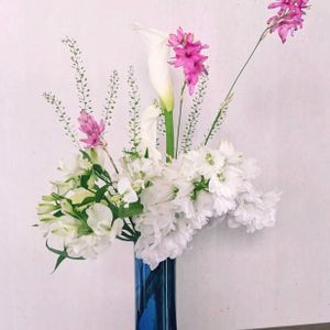 お気に入りの青い花びんに再アレンジ💙 この組み合わせ、なんか好き♡ 大きく手を広げていいものを吸い込んで! 一粒万倍日、皆さんいい日になりますように
