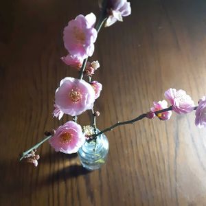 テーマ 流れる 明るい春の色、部屋がぱぁっと華やかになりました キイチゴの枝、水に差しておくと根が出るそうです。鉢植えにできたら嬉しいな