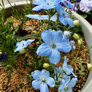 こんにちは😃 大好きなお花さんお迎えしましたo(^▽^)o 🏷️ 水曜日は水色 🏷️ 青い花で春浪漫2026 ◎ デルフィニウム デリフィニウムは、キンポウゲ科デルフィニウム属の多年草で、涼しい山間に生息しており、寒さには強い一方、暑さには弱いです。 5〜7月頃に花茎を伸ばし、青や紫、ピンク、白色の萼(がく)の中に白く小さな花を咲かせます。また種類は、長い花穂に豪華に花を咲かせるエラータム系、ちらちら花を咲かせ華奢な印象のシネンセ系、二つの中間に当たるベラドンナ系などがあります。 日当たり デルフィニウムは、日当たりと風通しのよい場所で育てます。成長期にあたる冬に日照不足になると、徒長してひょろひょろになりやすいです。 また、夏は休眠期にあたり日光はあまり必要とせず、デルフィニウムは高温多湿には弱いため、温度管理を優先して涼しい場所で育てるとよいです。 水やり 地植えの場合、水やりの必要はありません。 鉢植えの場合は、土の表面が乾いたら、午前中にたっぷりと水やりをします。水やりは葉に水をかけないように株元からしましょう。 とっても綺麗ですo(^▽^)o 元気に育ってほしいです(((o(*゚▽゚*)o)))♡🩵🩵🩵