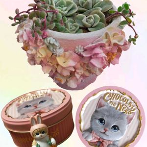 🏷ニャンニャン祭り🐱😸 🏷クリスマス月間🎅🏻🎄*⋆ 1枚目 ミールンさんに頂いたラブリーな鉢にラブリーローズをIN♪🥰️💕 マイメロちゃんに頂いた可愛い猫缶とミールンさんからの🐰モフニャンちゃん🩷💗🩷 2枚目 3年前だったかな?🙄💭 カッティングボードにクリスマス猫ちゃんのデコパージュ❤🎅🐱 毎年お迎えする花かんざし🌼*・ まだ蕾ですꉂ🤗お花🌼*・楽しみ🎶
