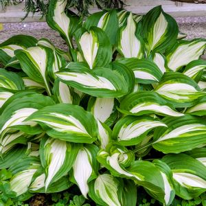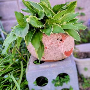 おはようございます🌱 我が家に何十年もいる(擬宝珠)ギボウシ🌱🌱🌱 品種名は不明ですが中斑のギボウシです🌱