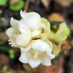 こんなに寒い時期なのにスズラン咲いてました😳❗️ 20年以上育てたますがこんな事は初めてです 一方春に咲いたお花は赤い実をつけてます