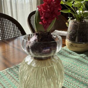 こっち面 ほぼ満開🌸 本日からテーブルの上に移動✨ 12/17~スタートした初めてのヒヤシンス水栽培!