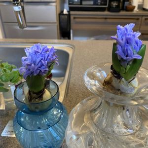 チビッ子˚*.꒰ ヒヤシンス ꒱.*˚ 🪻🪻葉っぱから直ぐお花 春を待ちながら 🩷若々しくなるピンクの呼吸法やってみよう ⚠️やり過ぎ注意 精神年齢のみが幼児並みになるとかならないとか😀!! 🏷️待つわ♪ 🏷️ビンクの呼吸法 に、参加しまーす