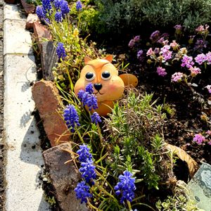 ムスカリの溢れ種で咲いた 散らばった苗を 拾っては植えで並べてます🟣 春〜やっと春〜