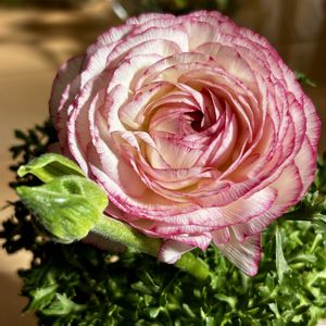 おはようございます🤗 先日久しぶりにお花を買いました♪ ラナンキュラスは初めてです❣️ 💜ベランダのムスカリ鉢からも 芽が出てまだ小さいのに もうお花の準備って😁💓 💚多分 ミディ胡蝶蘭の花芽✨ 2年目、3年目の子です♪ 咲くのはまだまだ先のようです😊 🌱またまた可愛い新芽🌱✨が! 葉っぱの上に出現♬ 小さくてとても愛おしい🥰