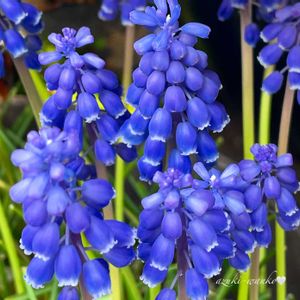 ムスカリ(学名: Muscari 英名: grape hyacinth)の花🌺🌿🌸 ムスカリは草丈15cmくらいでブドウのような花を咲かせる、球根植物です。 ムスカリはとても耐寒性の強い花で、球根は植えっぱなしでも自然分球で増え、毎年花が咲きます。 ムスカリは、青,紫,白,黄,ピンク,複色などの色合いがあります。 素敵な青いムスカリの花をお楽しみください。🌺🌿🌸