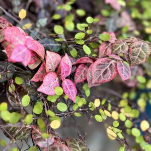 お散歩中に見た樹木(お花/果実)たち… 葉色の変化が楽しいハツユキカズラ🌿 シナマンサク(支那万作)🌼 ソシンロウバイ(素心蝋梅)🌼 マンリョウ(万両)🔴 ノイバラ(野茨)🔴 初雪蔓 ⚫︎⚪︎⚪︎⚪︎⚪︎