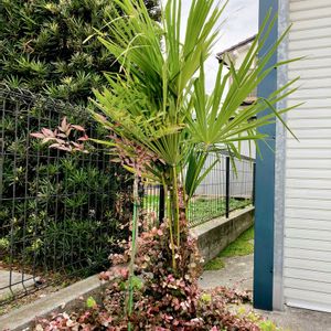 駐車場のシュロに、ハツユキカズラが巻きつき始めました! 春先まで見守ってみようと思います|ョ・ω・´;)ソォーッ