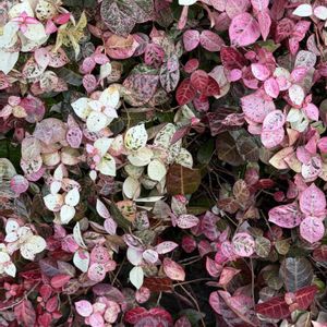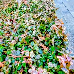 ハツユキカズラ(初雪葛)とワイヤープランツ 葉っぱが紅に色づいて、ワイヤープランツのネックレスのよう💎 道行く人の目を楽しませてくれています🌿** *⑅🩷☽︎︎.*·̩͙** *⑅🩷☽︎︎.*·̩͙** *⑅🩷☽︎︎.*·̩͙** *⑅🩷☽︎︎.*·̩͙ わたしが心の中で「花育て名人」と崇めている大先輩🧙♂️のお宅に並ぶ鉢植えより🪴