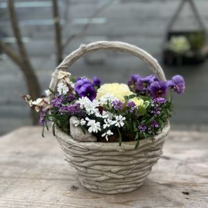 庭の入り口 ハンギングの寄せ植え イベリスの白が可愛い🤍