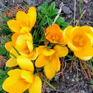 今日のお花 クロッカス🧡🧡💚 地面すれすれに可愛く咲いてました 昨年2月末のフラワーパーク江南 ③見切り品に弱い私🤭 78円のガーデンシクラメン ④⑤朝から飛行機雲がたくさん 今日も3月の陽気だそうです☀️