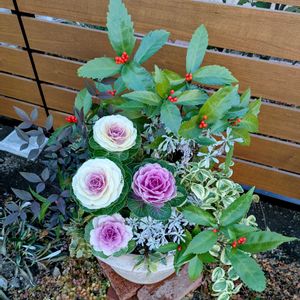 三が日が過ぎ仕事始めが近づいてきました でも気分はまだまだお正月 踊り葉牡丹を集めた寄せ植え