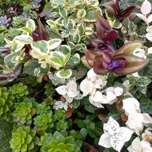 こんにちは🌿 久しぶりの投稿になります。 このところ、ぐずついたお天気が続いておりましたが、今日は秋晴れの一日となりました☀ 洗濯物もよく乾きます! 夏の酷暑を耐え抜いた庭の植物たちはたっぷりの恵みの雨を受け、活き活きと生長し続けています。 植物たちの美しい姿、備忘録として残していきます。 弱りつつありました多肉たちも、ようやく紅葉に向けてリスタートし始めました。 ◇1枚目→庭の入口 ◇2枚目→トラティスカンチア セブリナのお花 ◇3枚目→アメジストセージ ◇4~5枚目→多肉いろいろ 2枚目のトラディスカンチア セブリナの小さな紫色のお花は、これまで長く育ててきた中で、初めて見つけました✨✨ (今まで、ただ気がつかなかっただけかもしれません💦) 3枚目のアメジストセージは、私のアカウントネームにもなっておりますが、何年もかけて挿し木で増やし、庭のあちこちで可愛らしい花穂を付けてくれるようになりました。 大好きなハーブのひとつです。 4~5枚目は庭の直置き多肉たちです。 夏の間、日差しが強い時間帯は寒冷紗をかけていた部分になります。 我が家では、夏の直射対策も冬の防寒対策も、寒冷紗を使用しています。 雨が降れば雨ざらしになりますが、それでも生き抜いてこられたのは、普及種が多く育っていることによります。 置き場所問題は、我が家に取りましても永遠のテーマになりますが、今年も変わらず沢山の葉挿しをスタートしています🌱 一年後が楽しみです😊