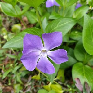 ツルニチニチソウ 春から初夏に掛けて紫色の5裂した花を咲かせます♪ 今年も見られて良かった✨ 4月に入り暖かくなったのに、兵庫県ではここ数日の雨で桜が散るか心配な今日この頃💦 お花見したいと言うより、単純に折角花を咲かせてくれた桜が切ないです🥲