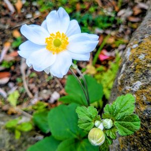 各地から積雪のニュースの今日 朝、俯いていたシュウメイギクが、☀に向かって咲きました。 他の株は酷暑でカラカラになったので半日陰に移植。 大きな石の下に根っこを延ばして抜けなかった一株。 可憐に、力強く咲いてます🤭
