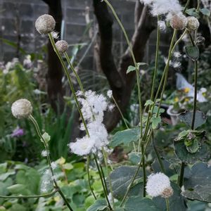 シュウメイギク(秋明菊) キンポウゲ科キンポウゲ属の多年草 ①②③④ 秋に花が咲いて、そのままにしていたら、 花後にできる玉のような実が膨らんできて、ぽっかり穴ができて、壺のような形になって、形を崩しながら、種子をつけたふわふわの綿毛が飛んでいく… 毎年見る光景ですが、つい、ぼ~っと見入ってしまいます😄 ⑤ シュウメイギクの花 同じ場所で、2025.10/24撮影