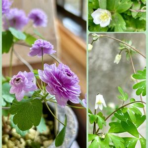① カンザキアヤメ ② スミレ ③④ ニリンソウ 鉢植えと地植え どちらも一輪咲きました😊