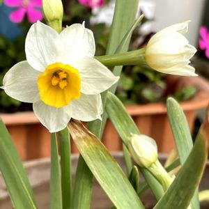 〜スイセン〜 固い蕾がやっと開いて咲いてくれました 花びらが透き通っているように見えました スイセンは漢字で書くと「水仙」 もともと中国からきたもので、「水中にある仙人」に見立てて「水仙」と名付けられたのだと言われています スイセンは清楚で美しいということですね 学名のナルキッソスも調べてみると興味惹かれますね 〜オキナグサ〜 スイセンと一緒に投稿した2/6オキナグサは一足先に咲きました その時のクリスマスローズはまだ蕾のままです でも、春の足音が近づいているのでクリローさんももうすぐ目覚めると思います 🏷️白い水曜日♡ 🏷️白い貴婦人✨