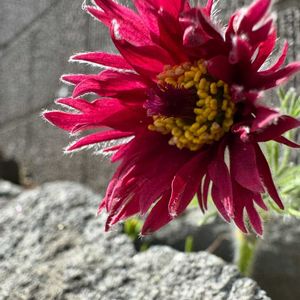 🏷️ 真っ赤な火曜日 🏷️ あっ火曜日 昨年まで年に複数回咲いてくれていた赤いオキナソウ♥️ この春は一輪だけ( ー́ࡇー̀)ハァ 二回目はあるのかな? 花弁に白い毛がほわほわ👀✨ 株は未だ生き残っててくれることに感謝(❁ᴗ͈ˬᴗ͈) 八重咲じゃないニ種は元気そうです👍🏻