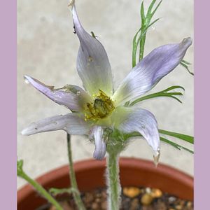 おはようございます👋😃🌧️ 一週間ほど前に見つけた翁草の蕾🌿 えっ、蕾!! 今頃😍⤴️⤴️ 3月~咲き始め、最後は6月初旬💠 昨日から白い花弁が❇️ えっ、でもこの翁草は白では無い!! ビックリの連続です😊♪