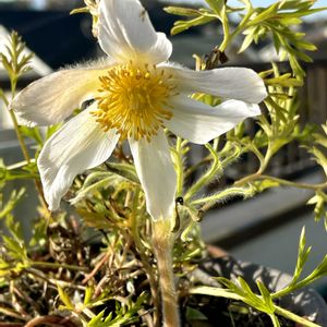 こんばんは♪今日はこちらはとても暖かい小春日和でした 11/7投稿の蕾だったオキナグサが何とか咲いてくれました 寒さでダメかと思いましたが暖かい日が何日か続いたのが良かったのかもしれません 花弁に見えるのは萼片ですが、ちょっといびつに開いています でもそこも健気でいいなあと思いました🥰 2枚目はツメレンゲです 満開になった後ですが、何故か小さな花の芯の所がピンク色になってきて可愛い🩷 西洋ミツバチが吸蜜に勤しんでいました 🏷️白い水曜日♡ 🏷️白い貴婦人✨