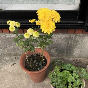 買った切花の挿し木から咲いた 菊の花2種です。しっかり咲いてくれてとても愛おしくほっこりです 右は種蒔きで出来たオダマキです 去年から育て始めました 開花が楽しみです