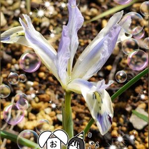 お祝い投稿です♪( ˶ᵔᵕᵔ˶و)و " mimozaさん ㊗️6900pic🎊 じゅんさん ㊗️5100pic💐 おめでとうございます🎉🎉🎉 先日はブルー💙のミニアイリスが咲きましたが 今度は地植えの子️🩵が咲いてきました(๑♡∀♡๑) ちょうど祝福する為に咲いてきたのかも~🎊 ②③ こちらも一気に咲いてきました✌ ④ 星の瞳さんꉂ😂 オダマキさんの中から~ ひょっこりꉂ🤣w𐤔 ⑤ 先日🕯𓈒 𓏸作った時に~ 可愛いキーホルダーも作りました✌