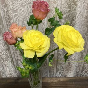 大好きなラナンキュラスとトルコキキョウ、お店で見かけてお連れしました。見るたびに嬉しい💕