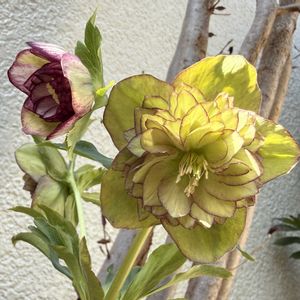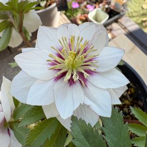 ちょっと前に購入した加藤農園さんの… クリスマスローズ🌹 dd ホワイトゴールドピコティ グロス系✨ クリスマスローズ初めてです! 冬の景色の中、華やかで可愛い💕 ヒメシャラの下で待機中…