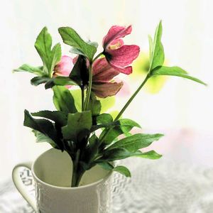 部屋のなかで 𓍯·˖* クリスマスローズ 終わりを迎える前にカップに活けて お部屋の中で楽しむのもいい感じですよね✨ これは少し前のfotoですが 外では葉っぱが大きくたくさん茂っていて 早く花後の処理をしなければ〜 ですね😅