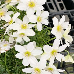 🧚♀️クレマチスカートマニージョー Clematis x cartmanii Joe'🧚♀️ 比較的小輪の白い花が早春に咲くクレマチスです。 可愛い苗をお迎えしました💕 春に小輪の可愛らしい白花を株いっぱいに咲かせるカートマニージョー🍀 淡いグリーンの蕾に純白のお花が可憐で清楚なたたずまい(ღ*ˇ ˇ*)。o♡ 常緑性なので、濃いグリーンの葉は、お花のない時期でも楽しむことができます✨ 花言葉:「精神の美」「旅人の喜び」