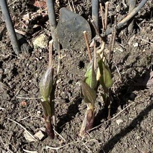 お久しぶりです。 ようやくのんびり出来てお庭を見ると、1年生苗だったデニーズダブル(薄紫色)ももう2年目となり、最初のちびっこ状態を思えば随分枝が長く育ってきました(0.7mくらい) 今年は暖かくなるのが早く、花芽も早いです。 購入後半年くらいの朱鳥も今年は開花見れるかな。 そして増える、新しい仲間達。
