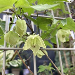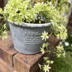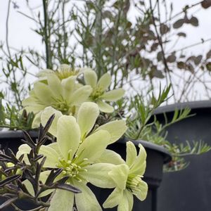 クレマチス ペトリエイ✨ この黄緑っぽくて サイズ小さめのお花✨ 垂れる感じも大好き🌿✨ 以前いた子が消えちゃったので 今年またお迎えしました🍀 鉢がハゲハゲ……(´▽`;)アハハハ💧 普段は庭のちょっと背高めの レンガの上に置いてるので(4枚目) あんまり関係ないってことで🤚