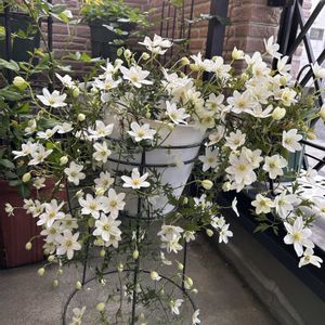 クレマチス麻生 さらに咲きました♪ 買ったときは5センチくらいの苗だったのが嘘みたいに大きくなりました✨ ラベルに名前しか書いていない苗で、どんな花が咲くかも分からないまま300円という値段につられて購入した麻生ちゃん(と白王冠)。 自分では絶対選ばない色の花ですが今は結構なお気に入り♪ これからまだまだ咲きます✨