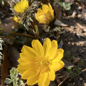福寿草 フクジュソウ 暖かな陽射しの元、黄色い花がぱっと開いて。 春を運んできたね。 咲き進んで、緑の葉も美しい。 スプリングエフェメラル🧚♀️ 2026/0221pic