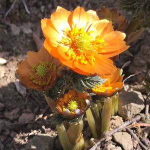 福寿草(フクジュソウ) オレンジ色は固有種の秩父紅です👍👍 満開までは至らず五分咲き程でしたね🤟🤟 お湿り(雨天)無いのが咲き姿に影響してますかね?🪷🪷 今週☔☔☔雨降れば最高かもね💪