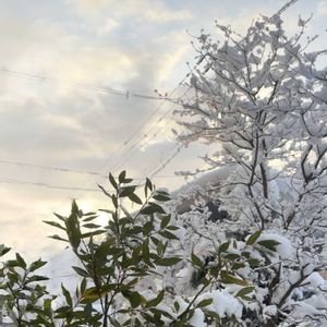 『 霧氷 ( むひょう) 』 🧊🧊🧊❄️🫧 雪が止んで 本日太陽が上がってます♪ あさは変わらず寒いですが こんな日は清らかな気持ちになる 庭の月桂樹 🌿.∘ 🪧私は死ぬまで変わりません の言葉通り✨️ 冬も逞しい✨️