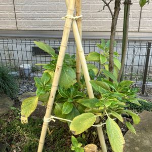 紫陽花と月桂樹を守る雪囲い。 今年の雪はほどほどだといいなぁ❄️